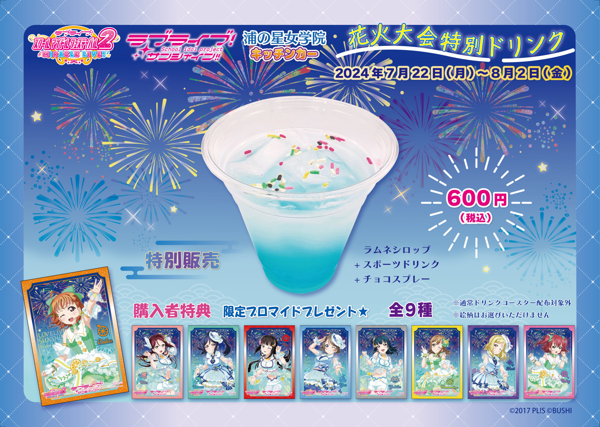 『浦の星女学院キッチンカー』より、花火大会特別ドリンク発売のお知らせです!